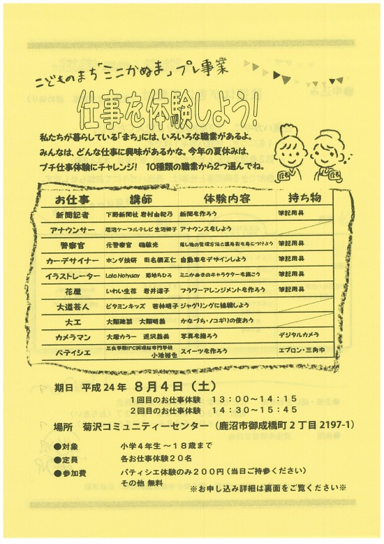 こどものまち「ミニかぬま」プレ事業