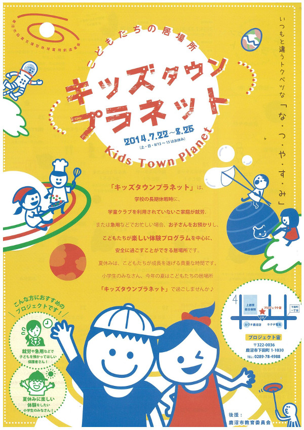 夏やシミは、こどもたちが成長を遂げる貴重な時間です。小学生のみなさん、今年の夏はこどもたちの居場所「キッズタウンプラネット」過ごしませんか♪